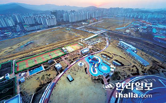 관광객 급증 랜드마크로 '급부상'2730억원 투자 유니온파크·타워 준공… 관광객 발길 이어져산책로·잔디광장과 족구장·농구장·다목적 체육관 등 조성친환경기초시설로 대한민국지방자치경영대전 최우수 선정도