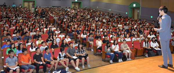 8월 29일 제주학생문화원에서 진행된 논술특강. 이날 '공부의 신'으로 알려진 강성태 공신닷컴 대표가 과목별 공부법을 소개했다. 강경민기자