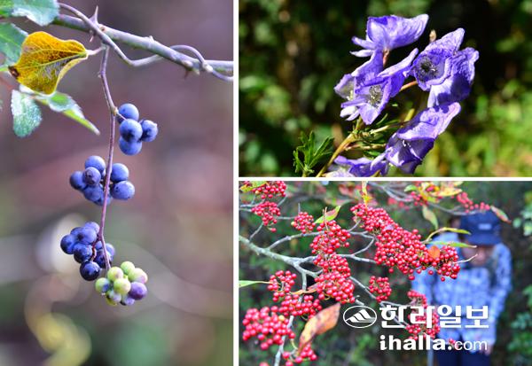 코스를 걷다 눈에 띈 정동열매, 가막살나무 열매, 한라돌저귀.(사진은 시계방향으로)