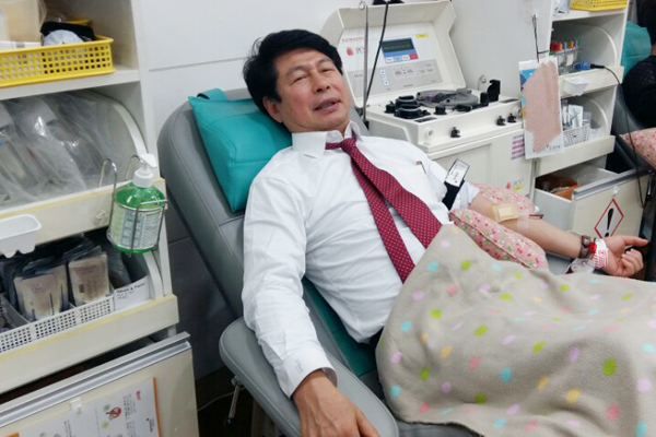 양창윤 예비후보가 지난 1일 대한적십자사 제주혈액원에서 헌혈하고 있다. 사진=선거사무소 제공