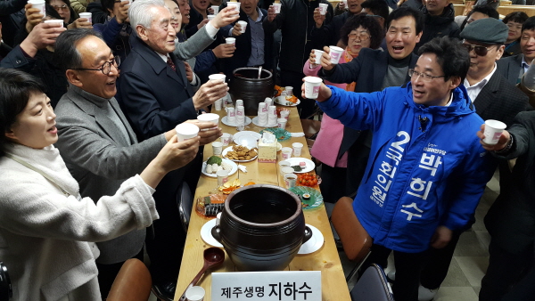 □또 박 예비후보는 "서민과의 소통의 정치, 생활정치 실현을 위한 정당개혁의 정치, 국회 개혁 정치, 제주의 가치 실현 정치"을 하겠다며, 제주의 청정 지하수를 직접 길어와 참석한 더불어민주당 관계자와 지지자들과 함께 건배를 하며 총선 승리를 위한 결집과 지지를 호소했다.