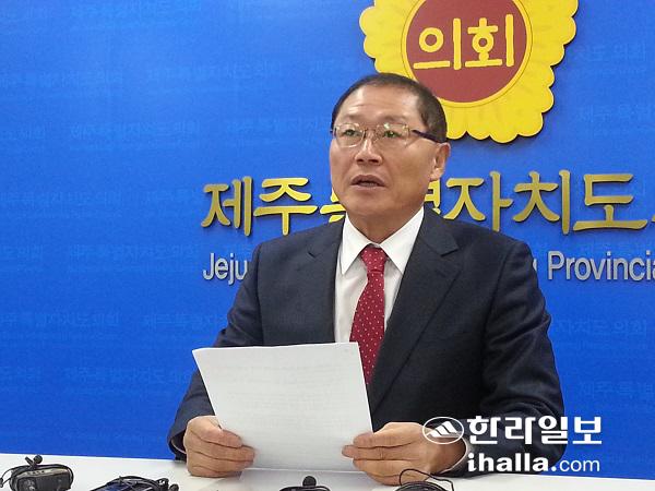 새누리당 제주시 갑선거구 공천이 확정된 양치석 예비후보가14일 제주도의회 도민의 방에서 기자회견을 열고 지지와 성원을 당부하고 있다. 강희만 기자