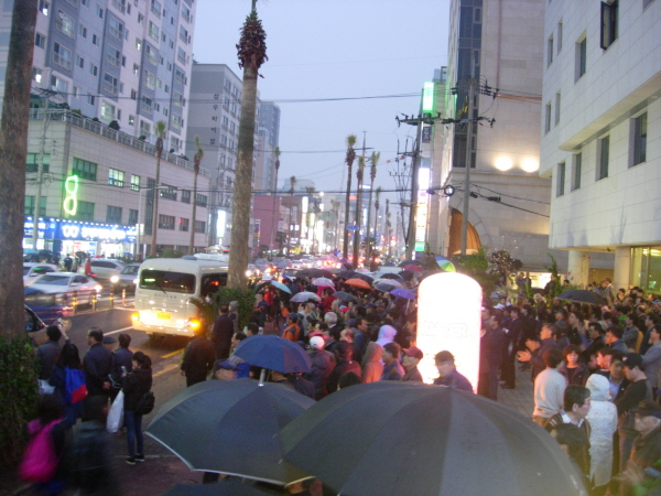 이날 첫 거리유세를 겸한 출정식은 선거사무소 바로 앞에서 열렸는데, 첫 유세인 만큼 많은 지지자들이 함께 했다.