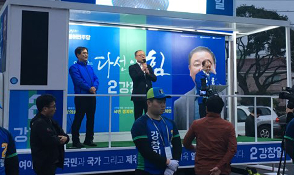 제주시갑 선거구의 더불어민주당 강창일 후보(기호 2번)가 31일 제주시 한림지역에서 1차 집중유세를 펼쳤다.