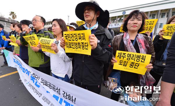 제주 영리병원 도입을 반대하는 회견.