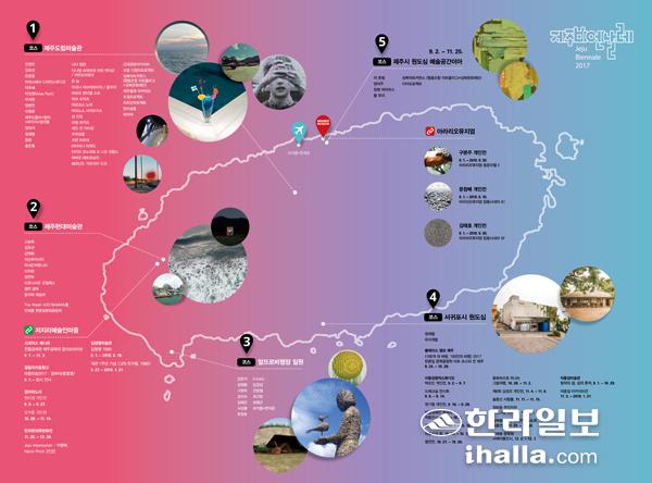 제주비엔날레 주요 전시장은 제주도립미술관, 제주현대미술관, 제주시 원도심 예술공간 이아, 서귀포시 원도심 서귀포관광극장과 이중섭거주지, 알뜨르 비행장으로 분산됐다. 이곳에서 이달 2일부터 12월 3일까지 3개월여 동안 15개국 70팀(명)이 참여해 설치·영상 작품 등을 풀어놓는다.