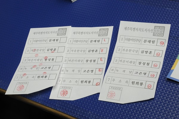 제주도지사 선거 후보 5명 모두에게 투표한 용지가 있는가 하면, 어떤 후보도 뽑지 않겠다는 의미인지 후보자 칸을 비켜나가 여러차례 도장을 찍은 정성(?)들인 투표용지가 발견되기도 했다.