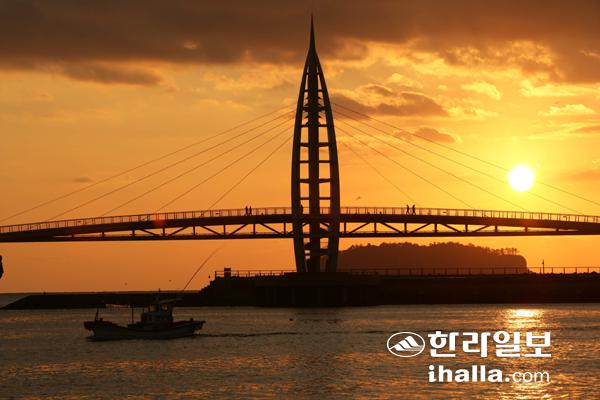 새연교를 걷노라면 자연스럽게 마주하는 서귀포항과 문섬, 범섬이 떠있는 서귀포 앞바다에서 북쪽으로는 한라산까지를 한눈에 조망할 수 있다. 또 돛을 형상화한 높이 45m의 주탑 등에는 화려한 발광다이오드(LED) 조명시설을 설치해 야간엔 환상적인 빛의 풍경을 만들어내며 서귀포 지역의 대표적인 야간 관광명소 아이콘으로 자리잡았다.