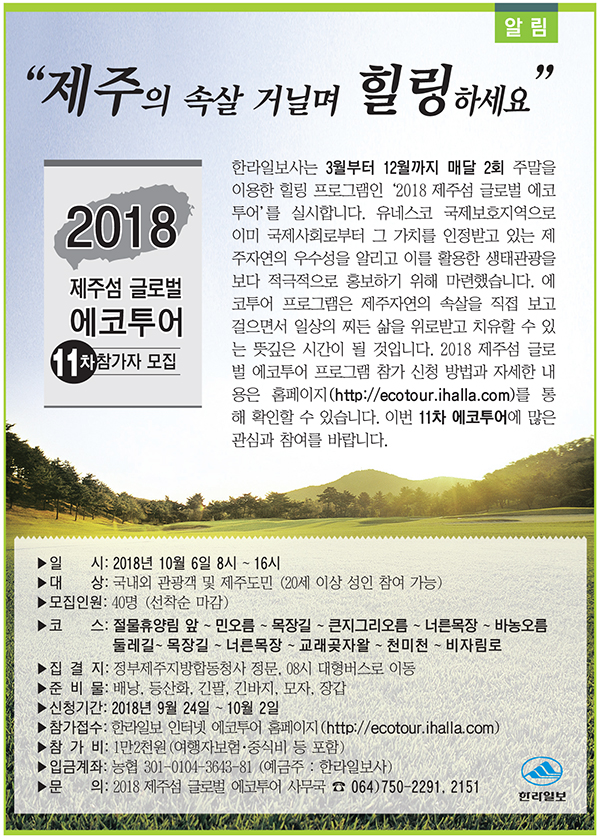[알림] '2018 제주섬 글로벌 에코투어' 11차 참가자 모집