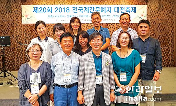 지난 8월 대전에서 열린 전국계간문예지 축제에 참석한 다층 동인들이 기념촬영을 하고 있다.