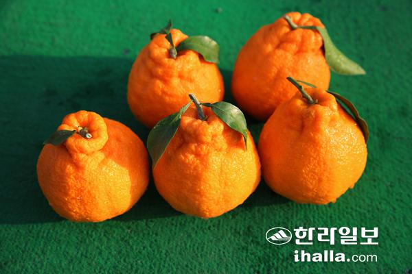 향기가 강하고 모양이 독특해서 인기 있는 한라봉.