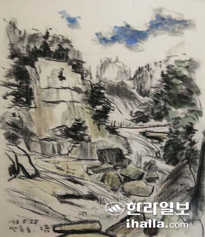 강요배, 만폭동, 종이에 콘테, 수채, 1998년.