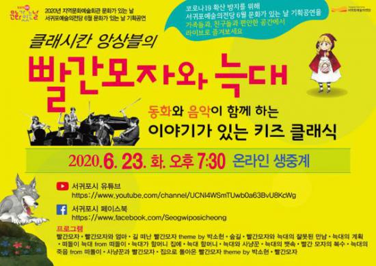 서귀포예술의전당은 오는 23일 이야기가 있는 키즈클래식 '빨간 모자와 늑대' 기획공연을 무관중으로 온라인 생중계한다고 15일 밝혔다.