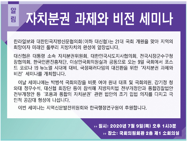 [알림] 자치분권 과제와 비전 세미나