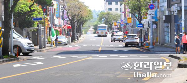 서귀포시 중문지역이 28번째 코로나19 확진자 발생으로 뒤숭숭한 가운데 22일 시내 도로가 사람들의 왕래가 뚝 끊기면서 한산한 모습을 보이고 있다. 이상국기자