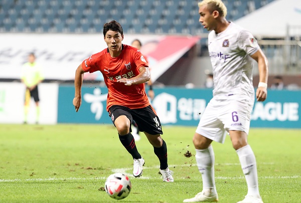 지난달 29일 안양전에서 활약하고 있는 주민규. 사진=제주유나이티드 제공
