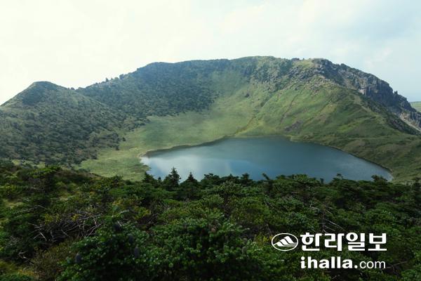 제9호 태풍 마이삭의 영향으로 지난 2일 한라산 남벽에 1000㎜ 넘는 기록적인 폭우가 내린 가운데 백록담이 오랜만에 만수위를 보여 장관을 연출하고 있다. 사진=난대아열대산림연구소 제공