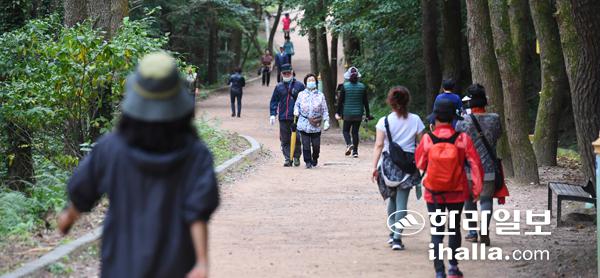 23일 제주시 연동 한라수목원을 찾은 많은 시민들이 산책을 하며 즐거운 시간을 보내고 있다. 이상국기자