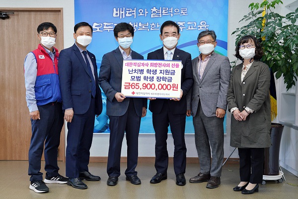 제주도교육청과 대한적십자사 제주도지사는 5일 '희망천사의 선물' 전달식을 개최했다.