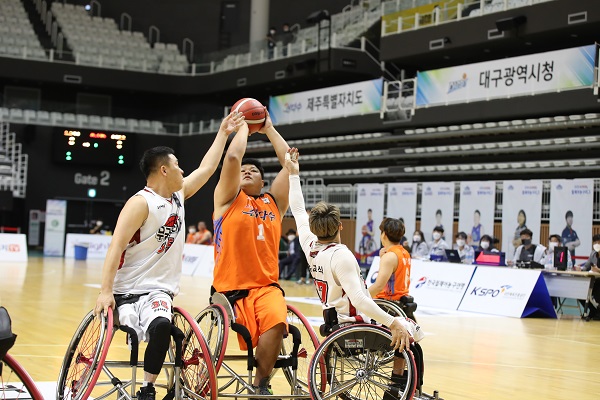 제주특별자치도 휠체어농구단(이하 제주)이 영원한 라이벌 서울시청을 꺾고 우승 문 앞까지 다가섰다.
