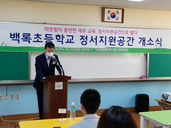 제주도교육청은 지난달 30일 백록초등학교에서 시범 운영되는 학교 정서지원공간 '백록마을' 개소식을 개최했다.