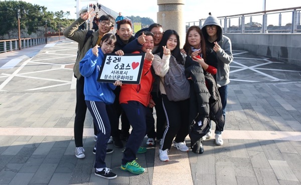 정다은씨의 청소년활동 모습. 올레지킴이 활동 중에 기념촬영을 하고 있다. 사진=정다은씨 제공