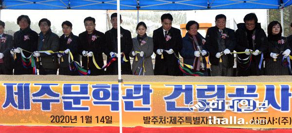 지난 1월 제주시 도남동 부지에서 제주도립 제주문학관 건립 기공식이 진행되고 있다.