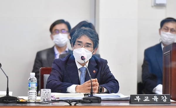 이에 대해 박주용 제주도교육청 부교육감이 묵묵부답으로 일관하자 강 의원은 "부교육감이 비서도 아니고 교육감한테 아무 말도 못하나. 검토라도 해달라"고 질책했다.