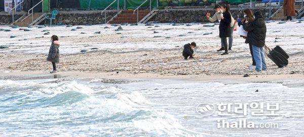29일 제주시 협재해수욕장을 찾은 관광객들이 사진 촬영을 하며 즐거운 시간을 보내고 있다. 이상국기자