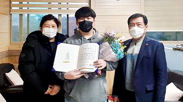 제주시 조천읍(읍장 윤승환)은 지난 29일 읍장실에서 아침하늘복지회 장학금 100만원을 함덕고등학교장의 추천을 받은 학생에게 수여했다.