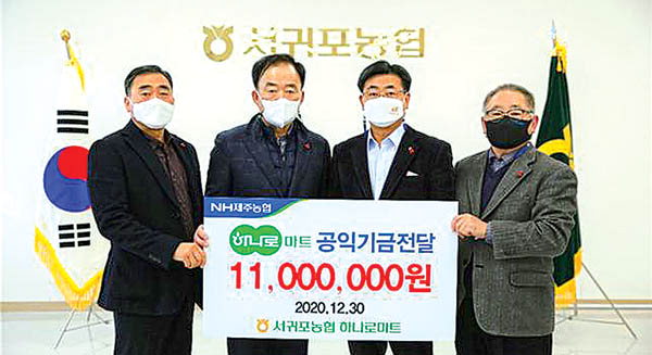 서귀포농협(조합장 현영택)은 지난달 30일 서귀포농협 하나로마트에서 하나로마트 수익금 중 일부인 1100만원을 사회복지공동모금회(회장 김남식)에 기탁했다.