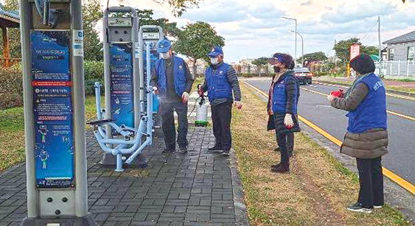 제주시 용담2동(동장 이승환)과 바르게살기위원회(위원장 유재호)는 지난 3일 체육시설 등 다중이용시설에 대해 코로나19 감염 예방 방역 활동을 실시했다.