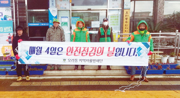 제주시 오라동지역자율방재단은 지난 6일 제주시 시외버스터미널 주변에서 안전문화 캠페인을 실시했다.