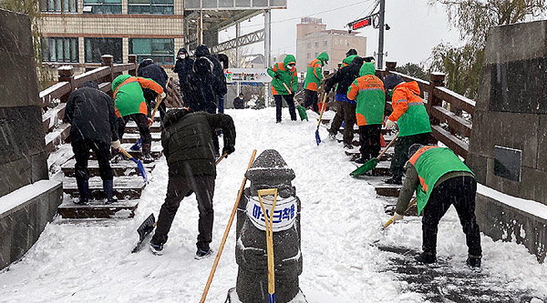 일도1동·자생단체 경사로 제설작업