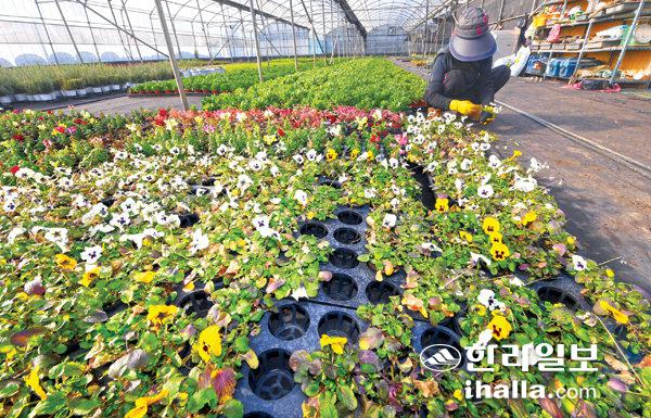 화훼시장이 연중 대목인 각급 학교 졸업철을 맞았지만 올해는 코로나19 여파로 대부분 비대면으로 치러지면서 화훼농가의 출하량이 급감해 농가 시름이 깊어가고 있다. 이상국기자