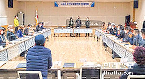 제주시 구좌읍(읍장 고재완)과 주민자치위원회(위원장 김기범)는 지난 27일 구좌읍다목적문화센터에서 방역수칙을 준수한 가운데 임원 선출을 위한 주민자치위원회 정례회의를 개최했다.