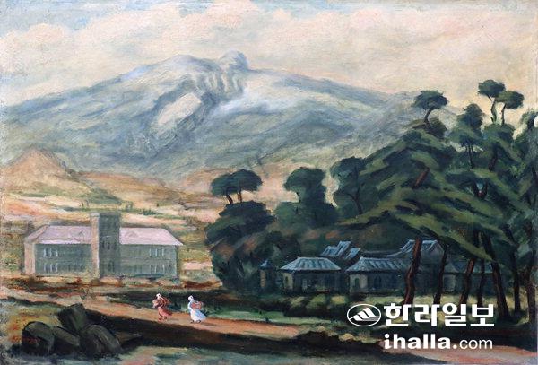 제주도 공공수장고에서 최근 보존처리를 마친 김인지의 '한라산이 보이는 풍경'. 사진=도립미술관 제공