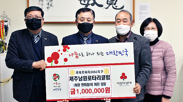 제주남원로타리클럽은 2016년부터 매년 100만원씩 꾸준히 남원읍에 기부해 오고 있다.