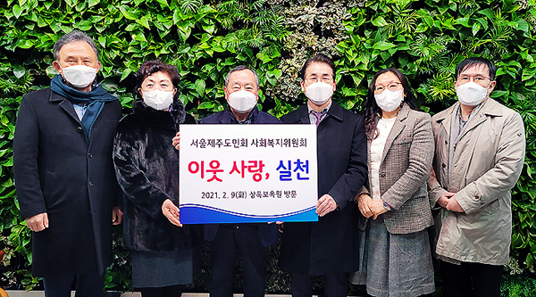 서울제주도민회 강한일 회장은 지난 9일 도민회 산하에 사회복지위원회(위원장 김미순)를 구성, 첫 행사로 서울 동작구 사당동에 있는 상록보육원을 방문해 500만원을 기탁하고 이웃사랑 실천행사를 가졌다.