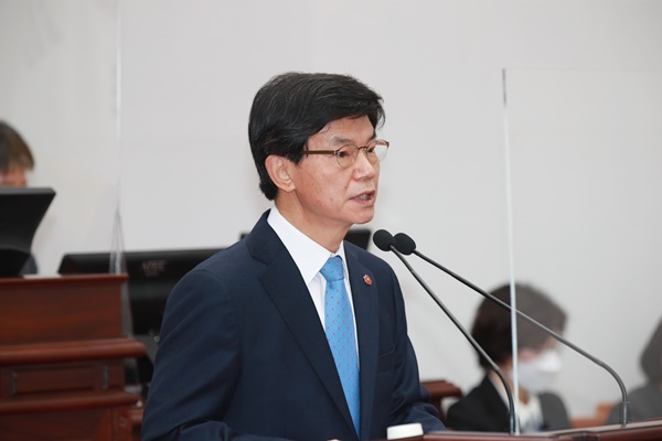 22일 제주자치도의회 주요업무보고 인사말 하는 이석문 교육감.