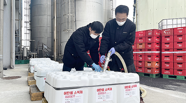 한라산소주 복지시설에 알코올 소독제