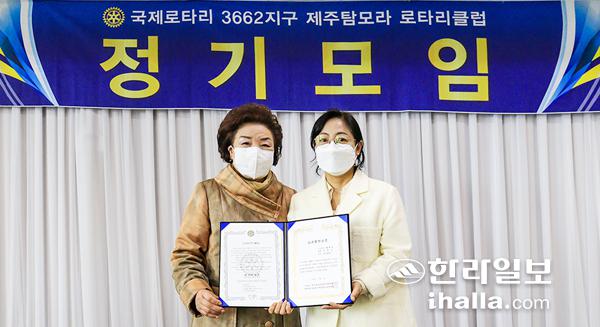 오정희 전 도의원은 지난 4일 호텔샬롬제주 연회장에서 열린 국제로타리 3662지구 제주탐모라 로타리클럽 주회에서 제주대 곽현주 학생에 장학금 100만원을 전달했다.