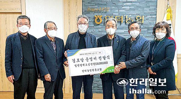 안덕농협(조합장 유봉성)은 지난 5일 조합장실에서 20개 경로당에 올해 경로당 운영자금 1850만원을 전달했다.