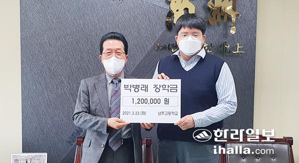 남주고등학교(교장 한상용)는 제일안경원 박병래 대표가 지난 23일 학교를 방문해 3학년 윤성수 학생에게 장학금 120만원을 전달했다고 밝혔다.