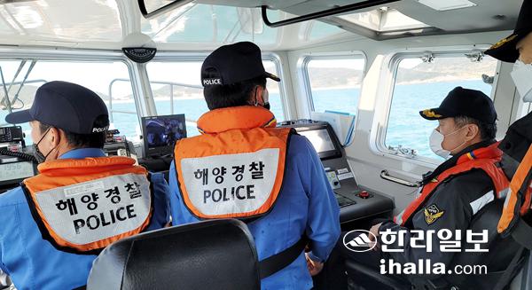 제주해양경찰서(서장 조윤만)는 24일 추자해역 부속섬 주변 순찰 및 북방해역 순시 점검을 진행했다. 이번 점검은 추자해역 특성에 맞는 경비구조 세력을 운영하고, 해양사고 발생 시 상황처리 역량을 제고하고자 마련된 것으로, 조윤만 서장이 직접 500t급 경비함정을 타고 현장을 둘러봤다.