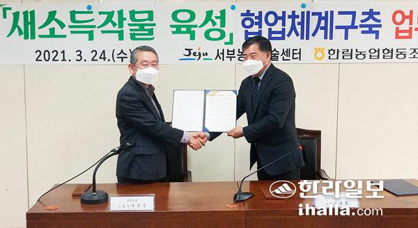 제주특별자치도 농업기술원 서부농업기술센터(이하 서부센터)와 한림농업협동조합은 24일 한림농협 회의실에서 지역농업 활성화 및 농산물 브랜드 가치 향상을 위한 업무 협약을 맺었다.