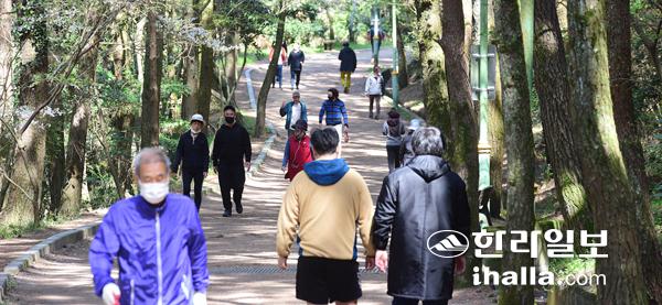 어느새 완연한 봄이다. 산과 들녘에는 초록빛 봄기운이 넘실댄다. 완연한 봄 날씨를 보인 25일 제주시 한라수목원을 찾은 많은 시민들이 신록으로 물들어 가는 수목길에서 산책을 즐기고 있다. 이상국기자