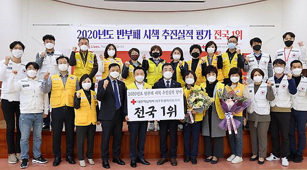 대한적십자사제주특별자치도지사(회장 오홍식)는 대한적십자사 전국 44개 기관을 대상으로 실시한 2020년도 반부패시책 추진실적 평가에서 전국 1위를 달성했다고 31일 밝혔다.