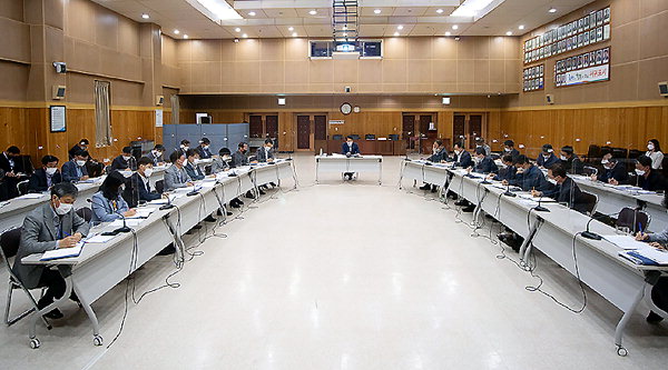 서귀포시가 김태엽 시장 취임 이후 지속적으로 추진 중인 현장방문 등 주민대화 시 수렴한 건의사항 점검을 위해 14일 시청 회의실에서 '2021년 1분기 시민건의사항 보고회'를 개최했다.