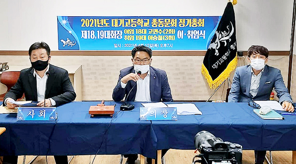 대기고등학교 총동문회는 지난 15일 ZOOM 방식으로 동문들이 참석한 가운데 정기총회 밎 회장 이·취임식을 가졌다. 이날 제18대 고민수(2회) 회장에 이어 제19대 신임 대기고 총동문회장에 이승철(3회) 회장이 취임했다.